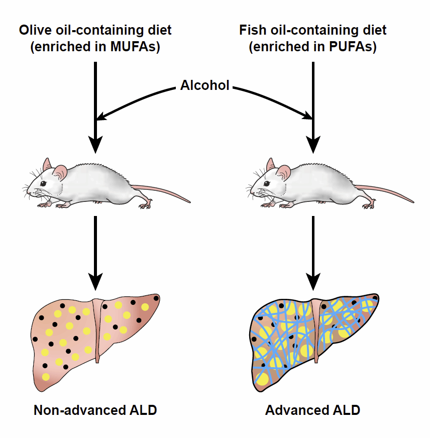 本研究结果强调了膳食脂质组成在决定酒精性肝病严重程度中的关键作用,并表明通过促铁死亡饮食结合酒精饲喂可作为一种新型进展期酒精性肝病小鼠模型,为深入研究酒精性肝病的发病机制及防治策略提供了重要工具。