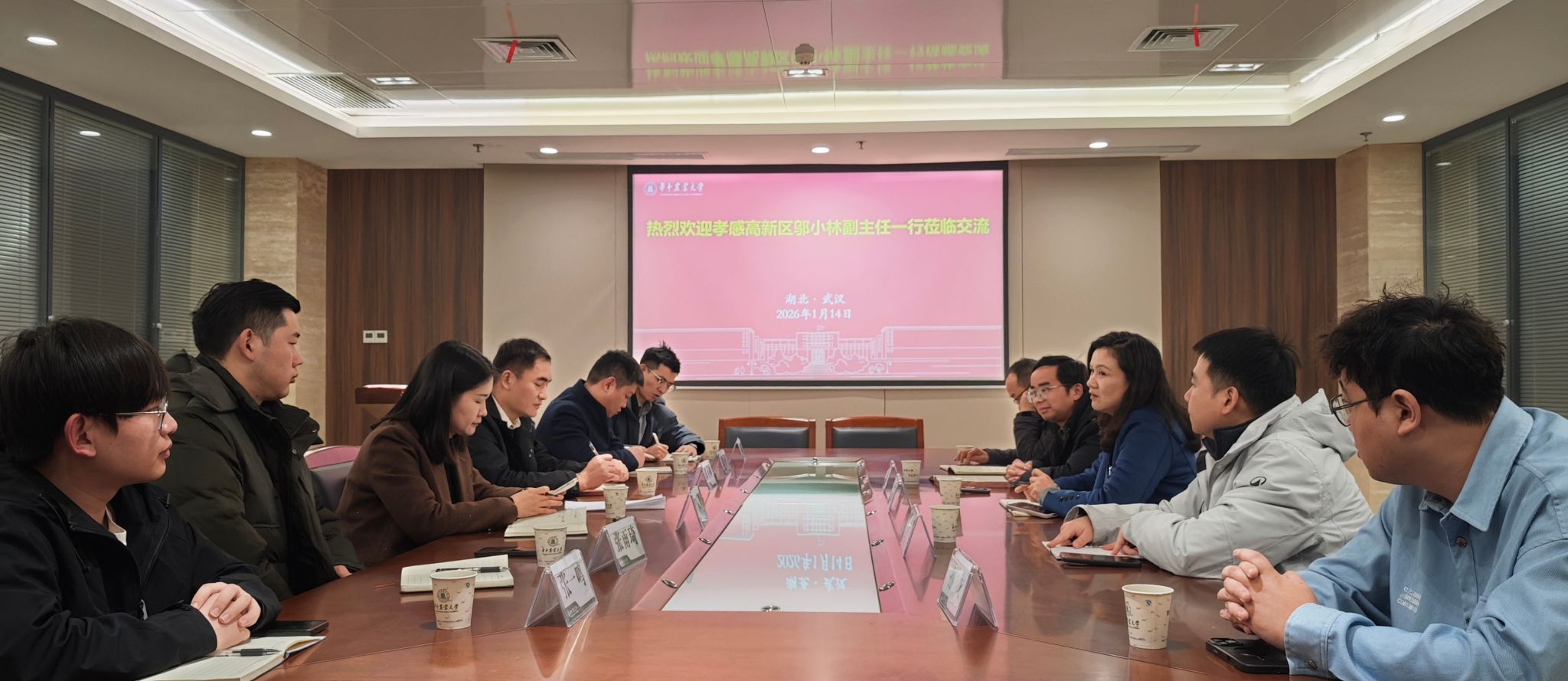 (通讯员 凌楚琦)2026年1月13日,孝感市高新区管委会副主任邬小林、长江科算(湖北)信息科技有限公司执行董事杨姝一行,来校实地考察“2025全国科算智药创新创业大赛”晋级项目——李礼研究员团队关于“非小细胞肺癌靶向治疗耐药新药研发”课题。生命科学技术学院党委书记范金凤、生物医学与健康学院常务副院长金安江参加会议。